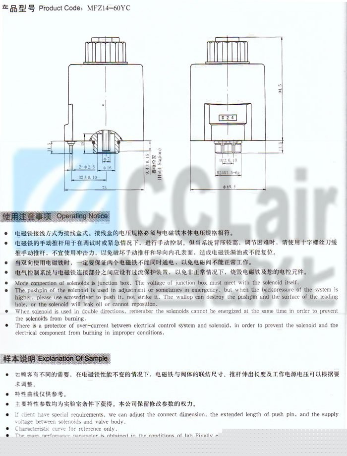 MFZ14-20YC,MFZ14-60YC,直流(接线盒式)湿式阀用电磁铁