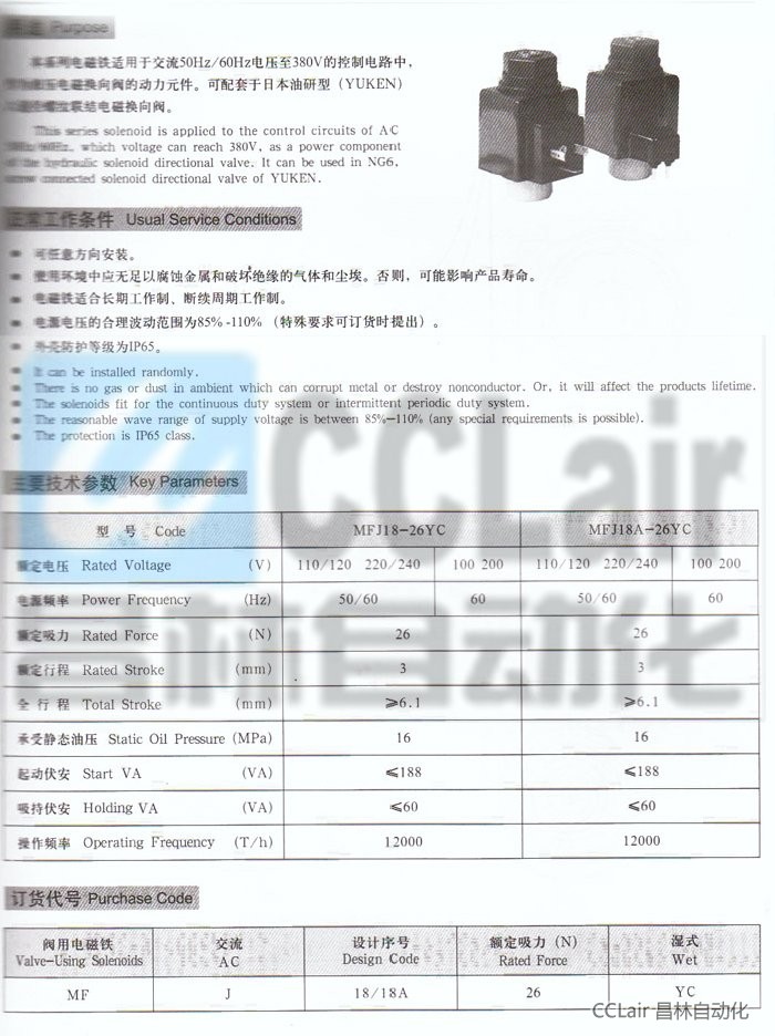 MFJ18-26YC,MFJ18A-26YC,交流湿式阀用电磁铁