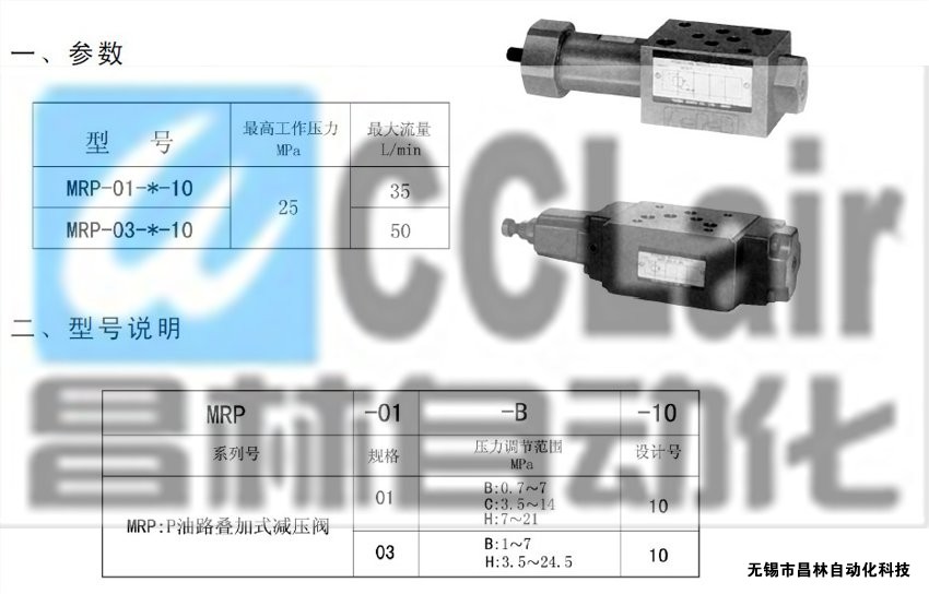 的详细介绍MRP-01-B-10,MRP-01-C-10,MRP-01-H-10,MRP-03-B-10,MRP-03-H-10,叠加式减压阀,生产厂家,价格
