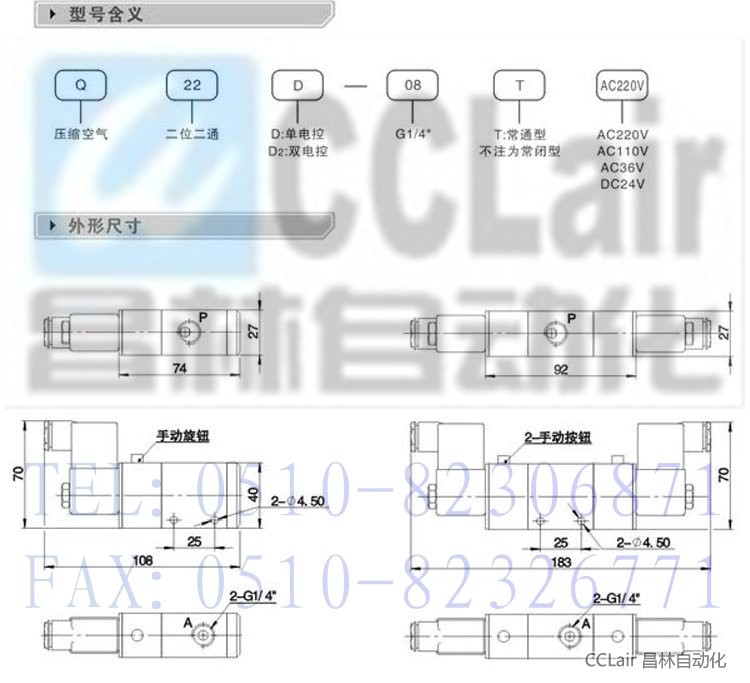 Q22D2-08,二位二通电磁换向阀