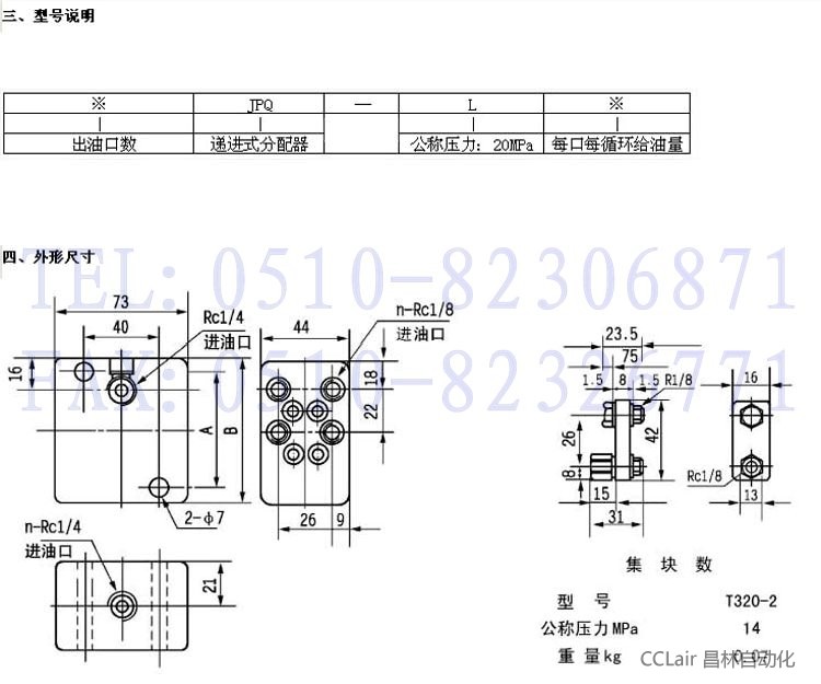 2、需要把给油量提高一倍或减少给油口数时,请使用集合块,需另行订货:T320-2。