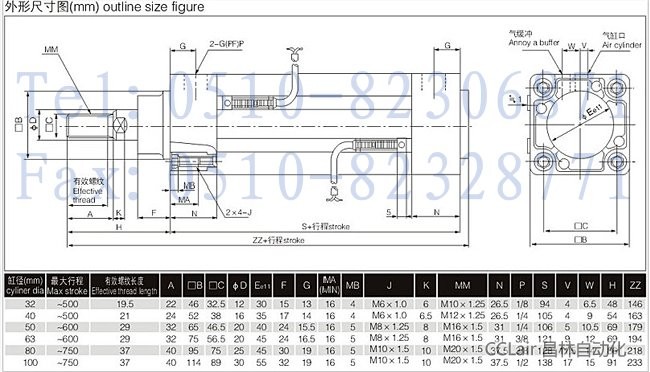 CP95SDB80-600,CP95SDB80-700,CP95SDB80-750,CP95SDB100-40,CP95SDB100-50,欧洲标准正方形缸体气缸,生产厂家,价格