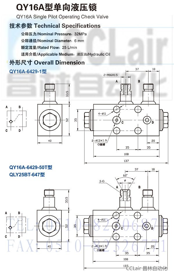 QY16A-6429-1,QY16A-6429-50T,单向液压锁,生产厂家,价格