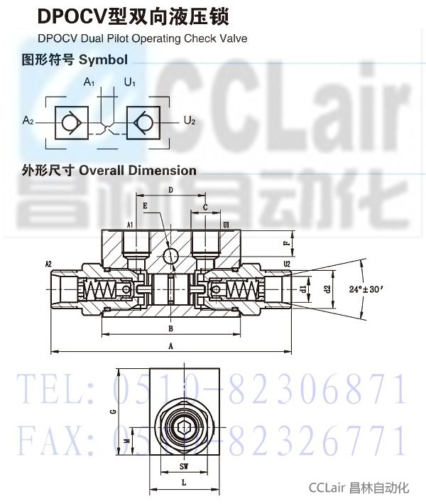 DPOCV-1/4-12L,DPOCV-3/8-12L,DPOCV-3/8-15L,DPOCV-1/2-15L,DPOCV-1/2-18L,双向液压锁