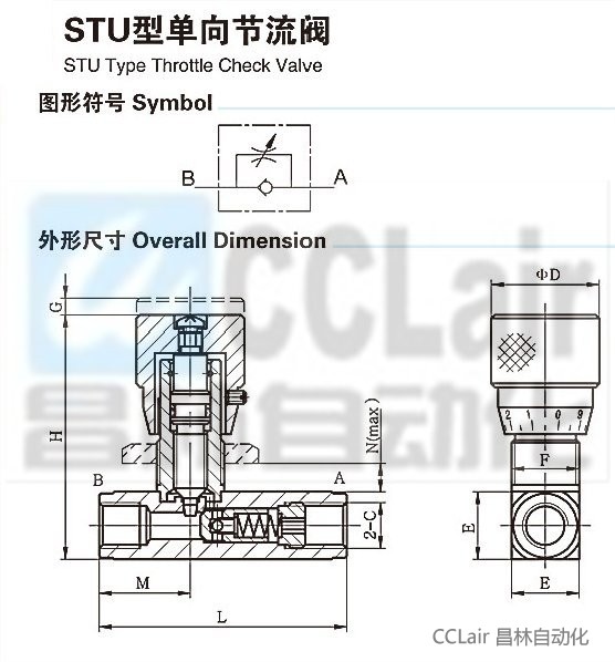 STU0400(G1/4),STU0600(G3/8),STU0800(G1/2),STU1200(G3/4),STU1600(G1),节流阀