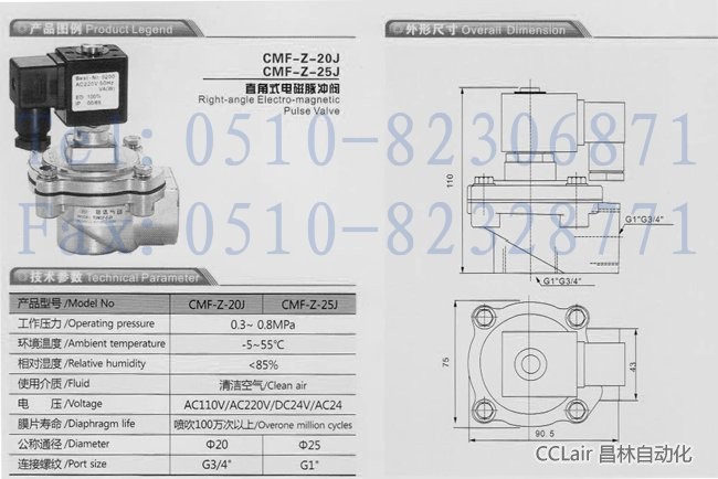 CMF-Z-20J,CMF-Z-25J,直角式电磁脉冲阀