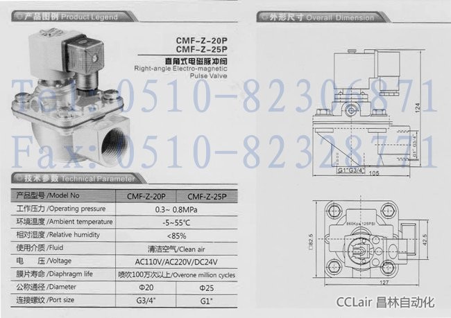 CMF-Z-20P,CMF-Z-25P,直角式电磁脉冲阀