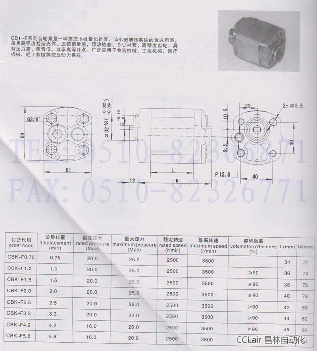 CBK-F2.5,CBK-F2.6,CBK-F3.3,CBK-F4.2,CBK-F5.8,齿轮泵