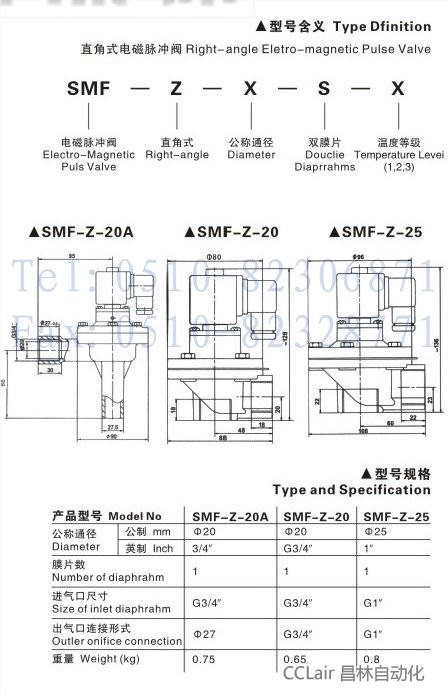 SMF-Z-20A,直角式电磁脉冲阀