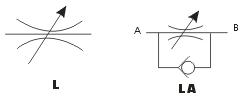 LA型单向节流截止阀,用于在一个方向调节精确的油液流量,并允许油液反向自由回流。
