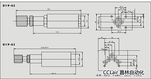 技术参数:型 号 DYP-02-P DYP-03 -P DYP-02 -A DYP-03-A DYP-02 -B DYP-03-B 最高工作压力MPa 31.5 最大流量l/min 02:35 03:70 重量Kg 02:1.4 03:4.2 外形及安装尺寸: