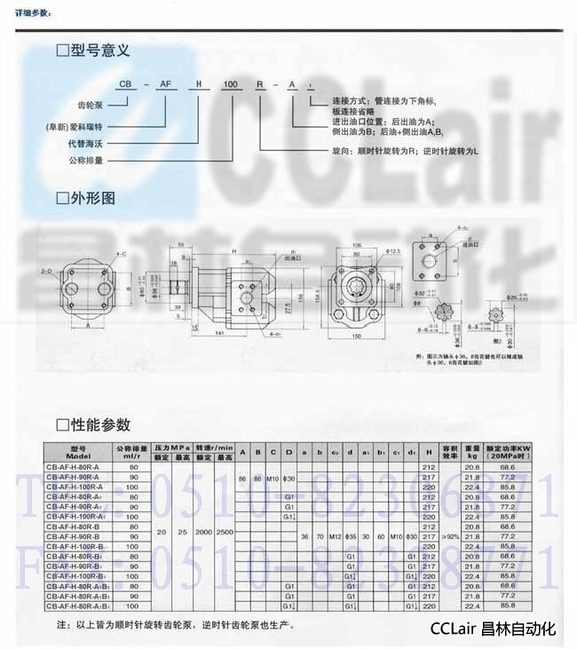 CB-AF-H-80R-A1B1,CB-AF-H-90R-A1B1,CB-AF-H-100R-A1B1,齿轮泵,