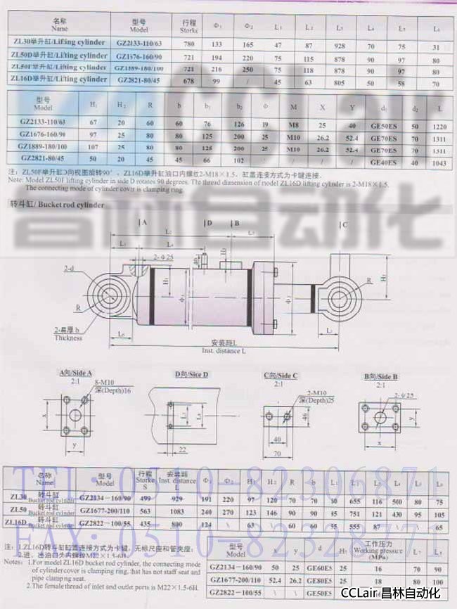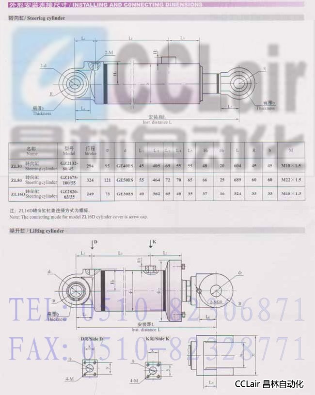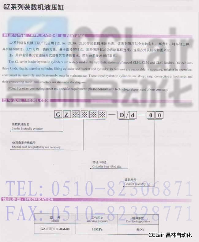 GZ1677-200/110,GZ2822-100/55,GZ2133-110/63,装载机液压缸