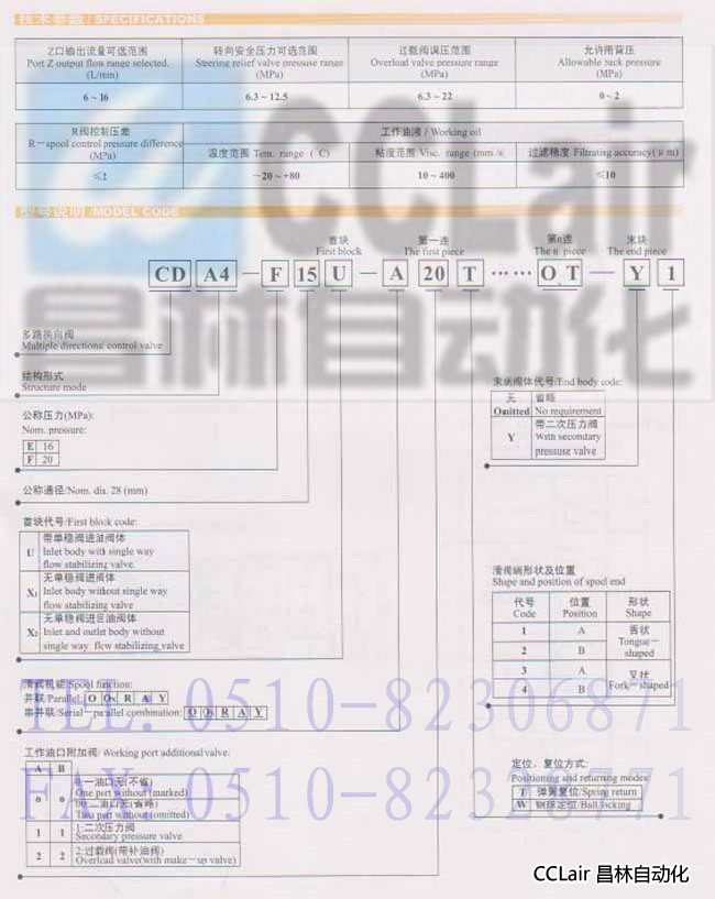 CDA4-F15U,CDA4-F15X1,CDA4-F15X2,多路换向阀,
