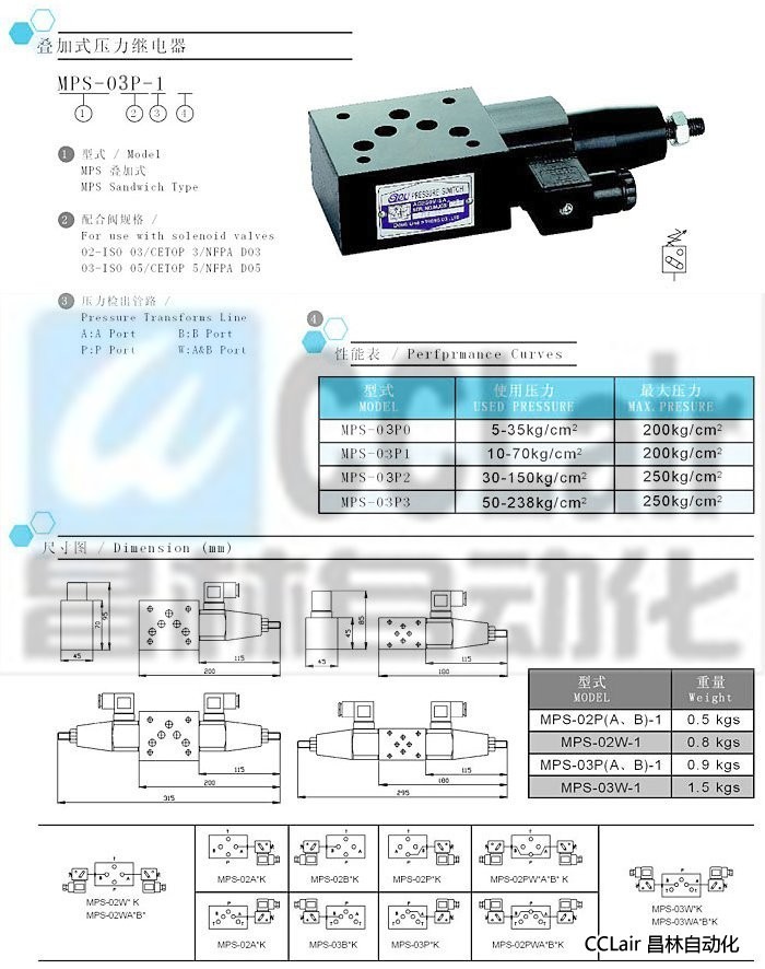 MPS-03P-1,MPS-03A-1,MPS-03B-1,MPS-02P-1,MPS-02A-1,MPS-02B-1,叠加式压力继电器