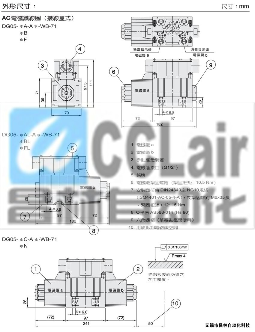 DG05-2AL,DG05-3AL,DG05-5AL,DG05-6AL,DG05-7AL,DG05-8AL,湿式电磁铁操作换向阀