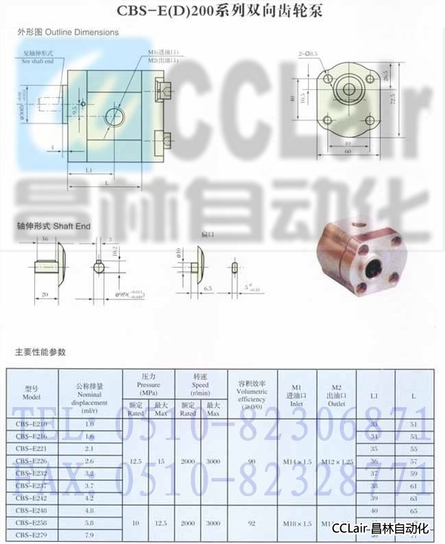 CBS-E210,CBS-E216,CBS-E221,CBS-E226,双向齿轮泵,