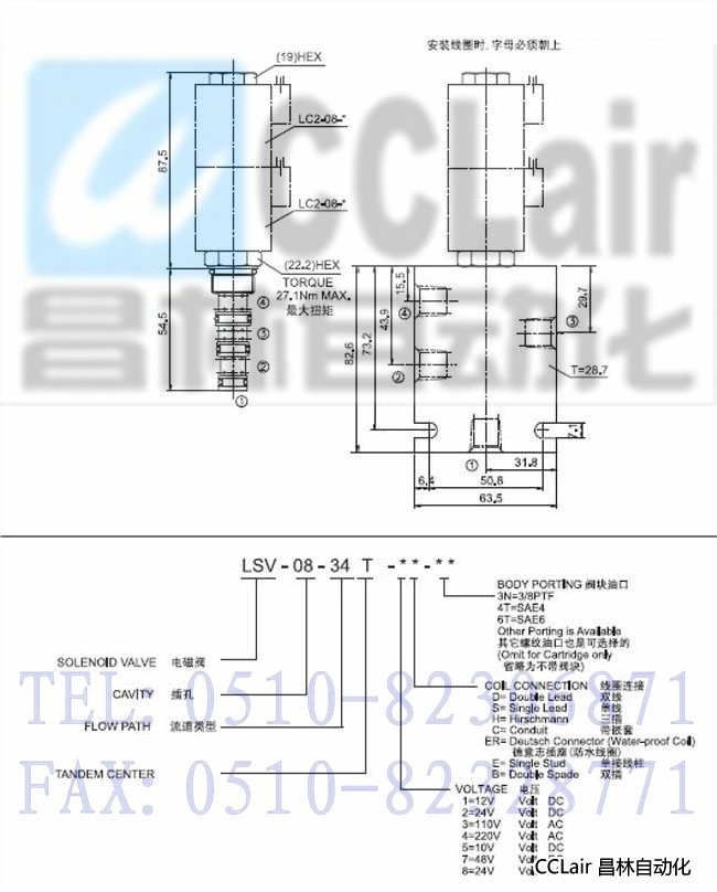 LSV-08-34T-8D,LSV-08-34T-8H,LSV-08-34T-8C,LSV-08-34T-8S,三位四通电磁阀