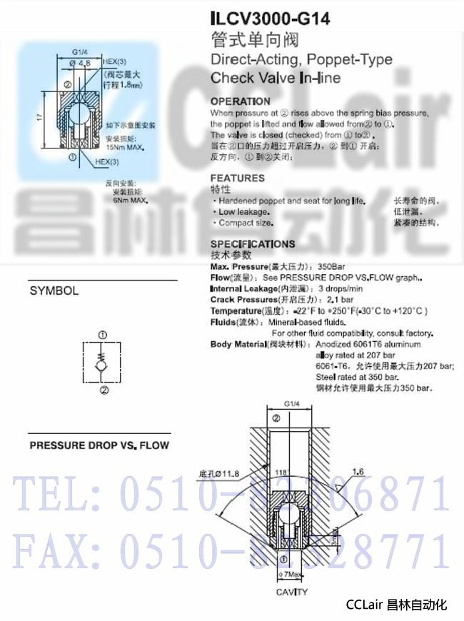 ILCV3000-G14,管式单向阀,生产厂家,价格