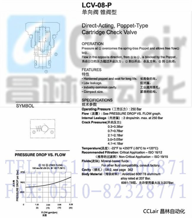 LCV-08-P-0.3,LCV-08-P-0.7,LCV-08-P-2.1,锥阀型单向阀,
