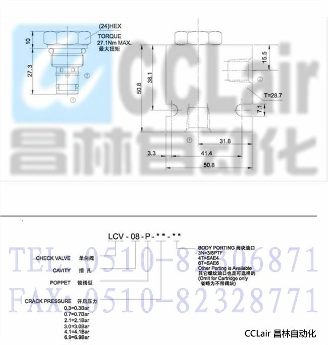 LCV-08-P-3.0,LCV-08-P-4.1,LCV-08-P-6.9,锥阀型单向阀,