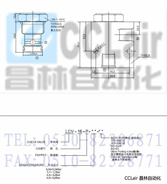 LCV-16-P-0.34,LCV-16-P-1.7,LCV-16-P-4.5,LCV-16-P-6.9,锥阀型单向阀,