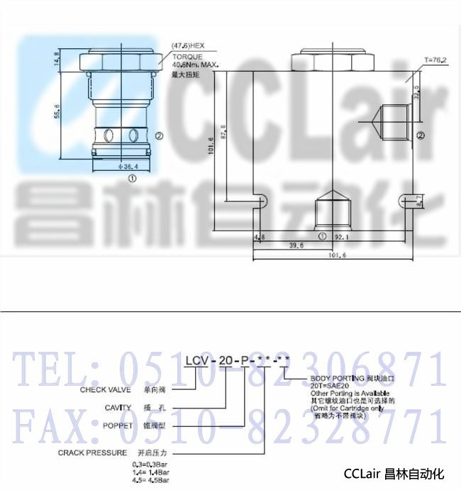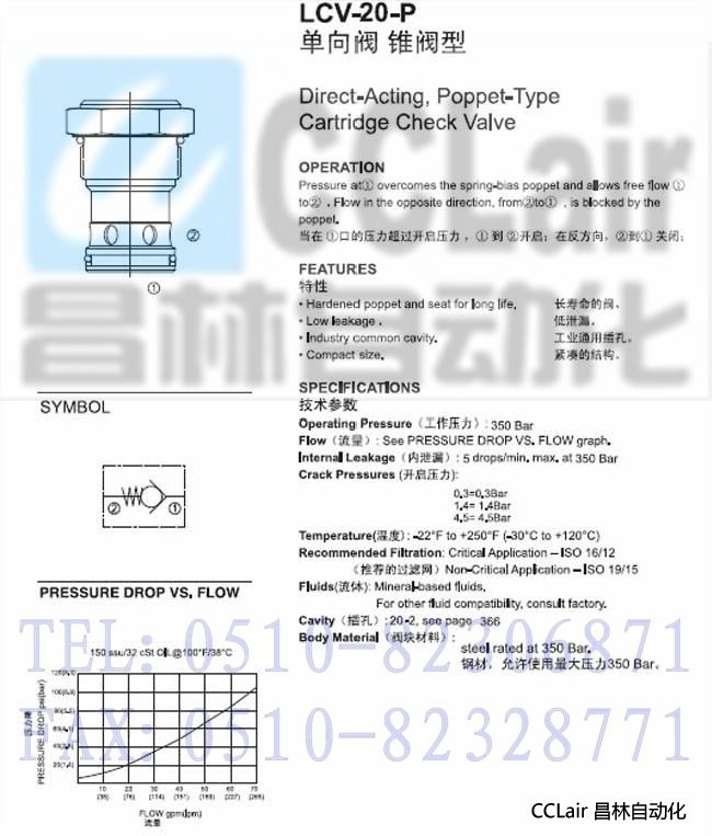 LCV-20-P-0.3,LCV-20-P-1.4,LCV-20-P-4.5,锥阀型单向阀,