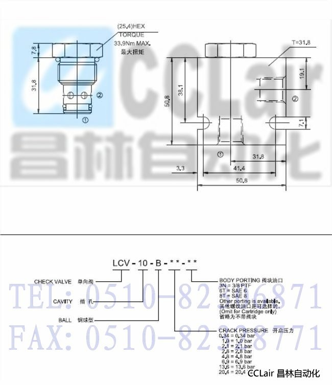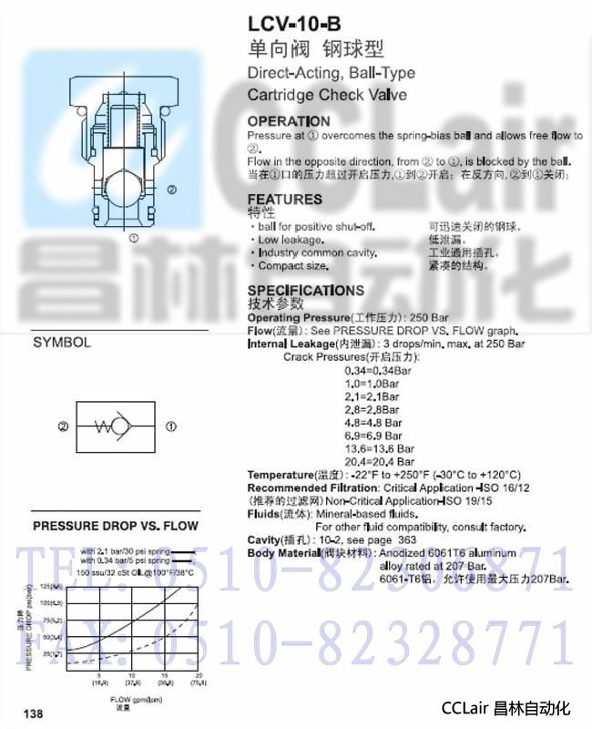 LCV-08-B-0.3,LCV-08-B-0.7,LCV-08-B-2.1,LCV-08-B-6.9,钢球型单向阀