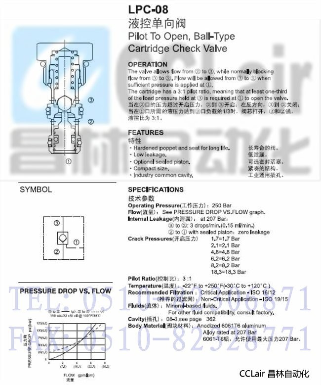 LPC-08-NS-1.7,LPC-08-NS-2.1,LPC-08-NS-4.8,LPC-08-NS-6.2,液控单向阀,