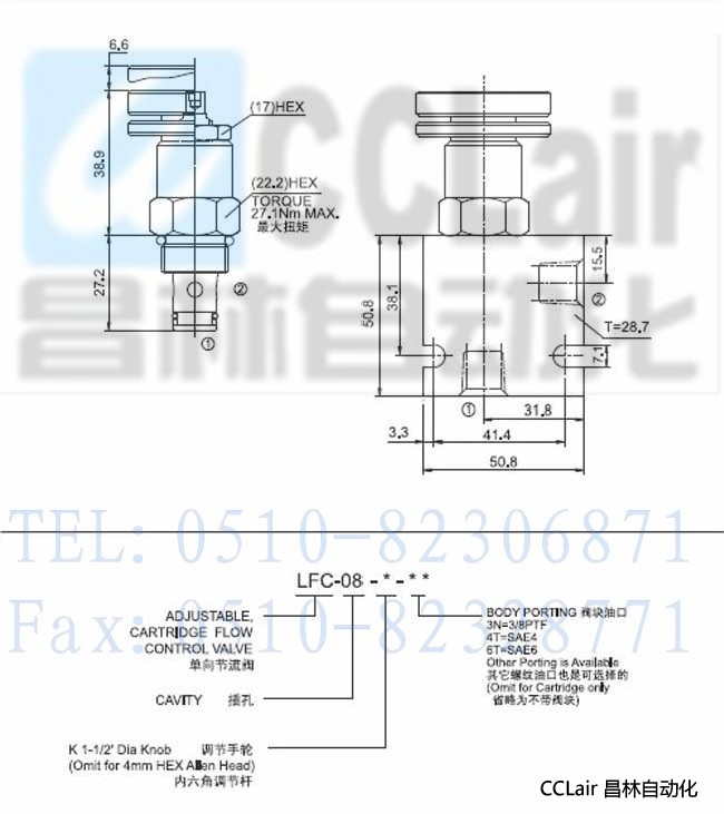 LFC-08-K-3N,LFC-08-K-4T,LFC-08-K-6T,单向节流阀,