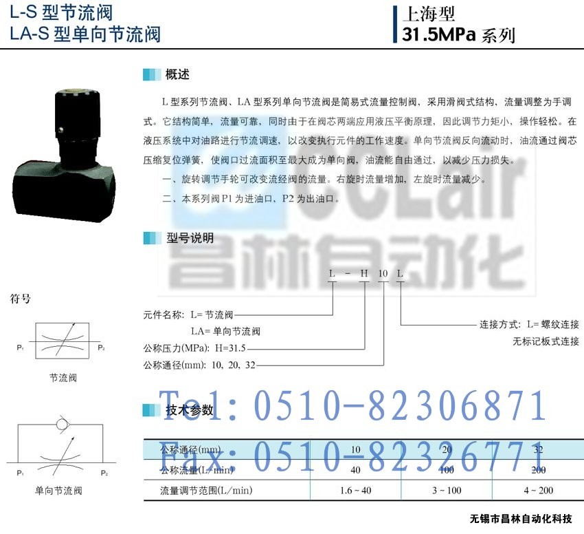 L-H10L,L-H20L,L-H32L,节流阀,昌林节流阀,节流阀生产厂家,节流阀价格