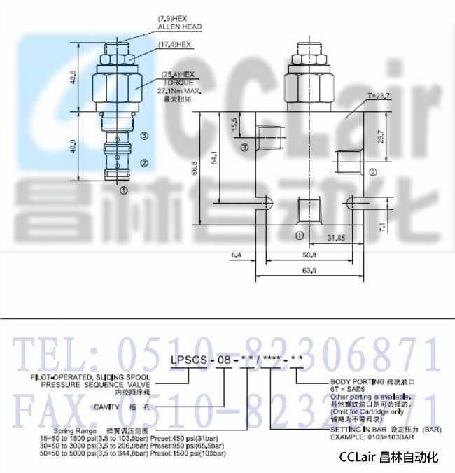 LPSCS-08-15-6T,LPSCS-08-30-6T,LPSCS-08-50-6T,内控顺序阀,