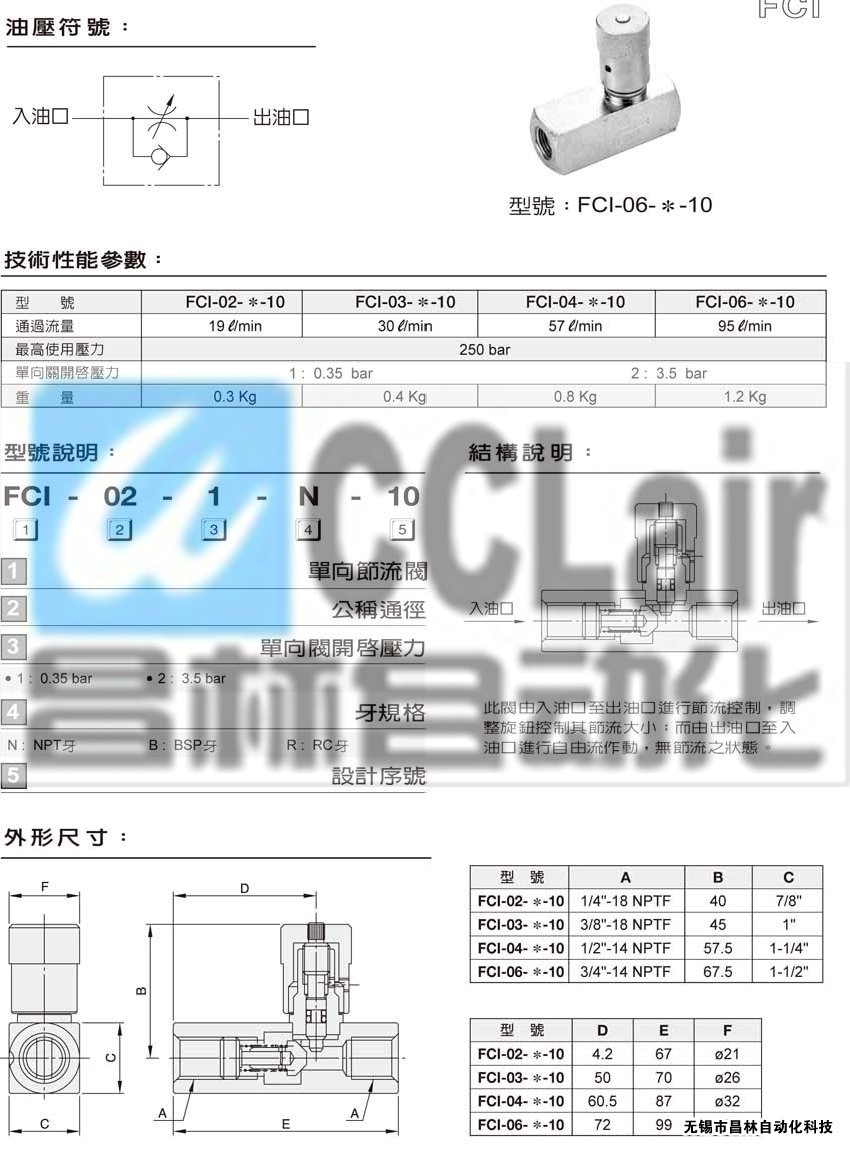 FCI-04-1-N-10,FCI-04-1-B-10,FCI-04-1-R-10,FCI-04-2-N-10,FCI-04-2-B-10,单向节流阀,生产厂家,价格