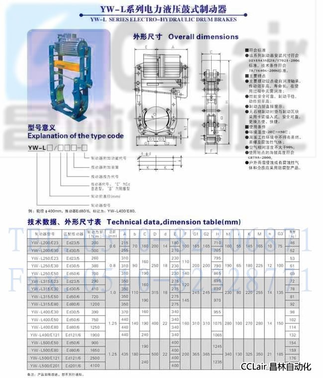 YW-L500/E50,YW-L500/E80,YW-L500/E121,YW-L500/E201,电力液压鼓式制动器