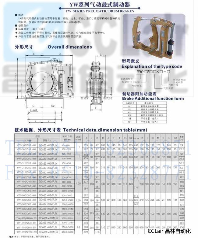 YW-400/Q50×60,YW-400/Q63×60,YW-500/Q50×60,气动鼓式制动器