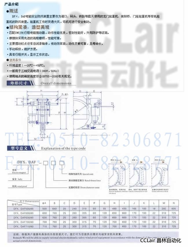 DFX700/80,DFX710/80,DAF700/80,DAF710/80,电磁液压安全防风铁楔制动器