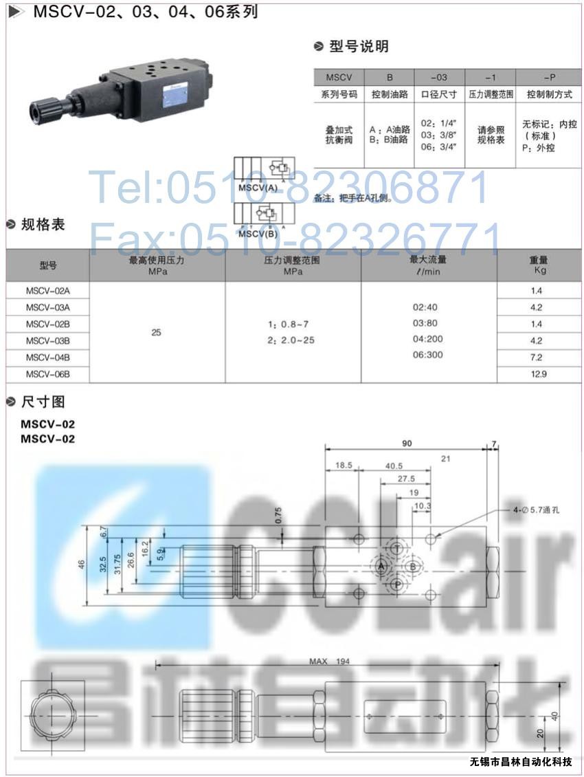 MSCV-02A,MSCV-03A,MSCV-02B,叠加式抗衡阀
