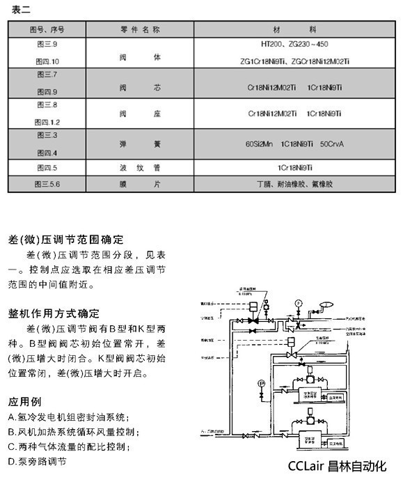 ZZC和ZZV自力式差(微)压调节阀是一种不需要外加能源的执行器产品.可用于公称压力PN01,PN10.差(微)压均可分段调节.从50mm .W.C至0.1MPa.其用途十分广泛,可用于工业燃烧系统,控制两种物料,如煤气,空气流量配比,以达理想燃烧.用于氢冷发电机组密封油系封.当差压阀的低压端通大气即为微压阀(差压阀负压,端压,力为零).