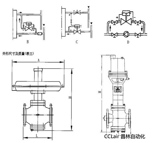 阀体为四通形式,因面K,B型可通用一种阀体.