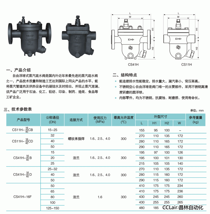 CS11H-16-3NL,CS11H-25-3NL,CS11H-40-3NL,CS41H-16-3NL,CS41H-25-3NL,CS41H-40-3NL,自由浮球式蒸汽疏水阀