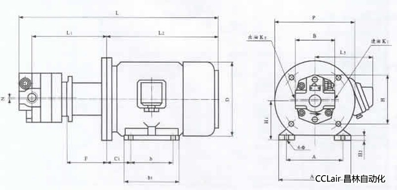 7、油泵后盖下端Z1/8"管牙口为油泵泄漏油外排口,使用时须保持通畅,不得堵死。