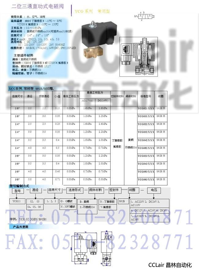 YCG11033,YCG11041,YCG11042,YCG11043,YCG11051,二位三通直动式电磁阀