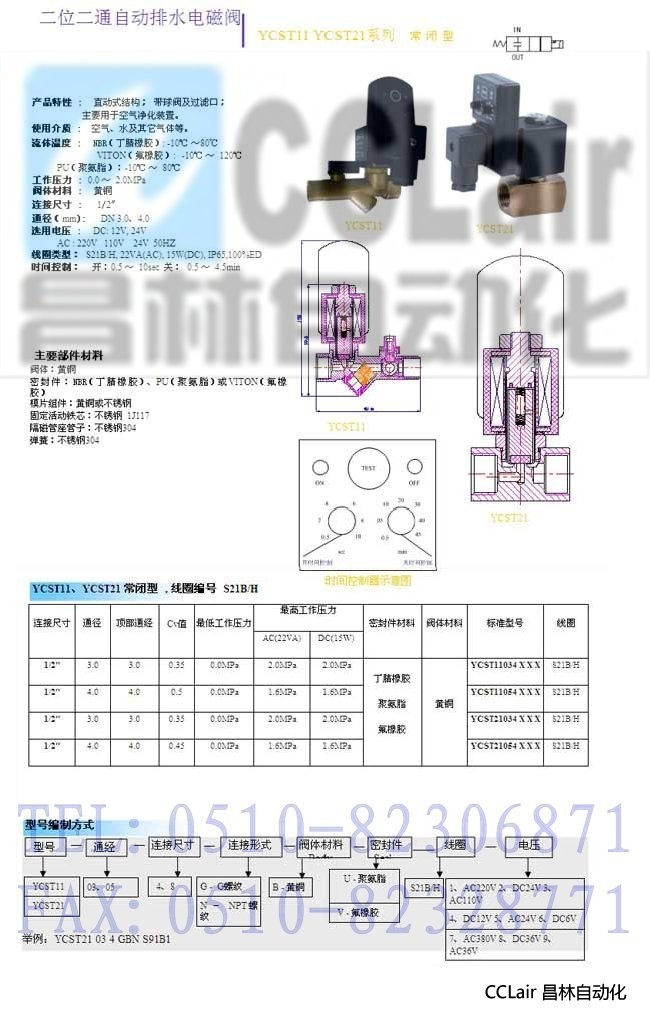 YCST11034 ,YCST11038 ,YCST21034 ,YCST21038 ,二位二通自动排水电磁阀 ,