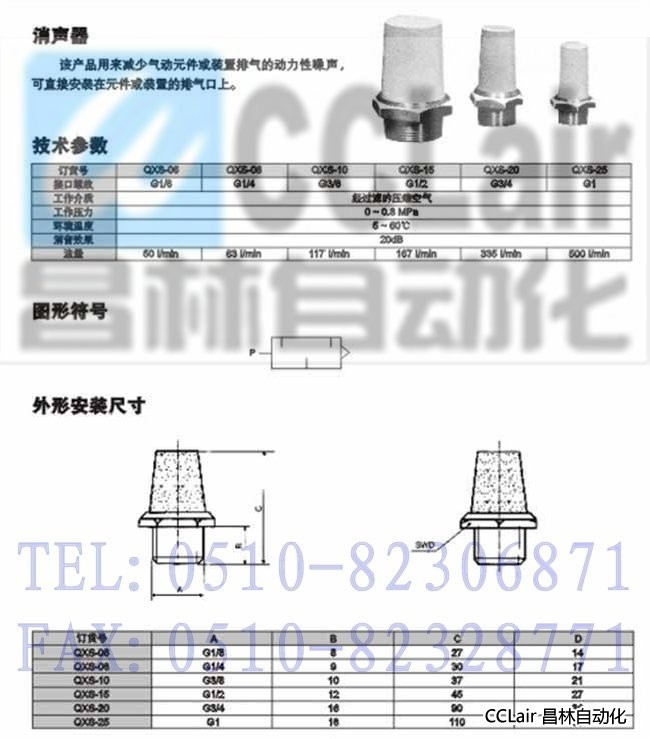 QXS-06,QXS-08,QXS-10,QXS-15,QXS-20,QXS-25,消声器