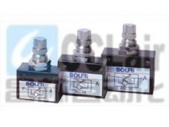 单向型流量控制阀,在气路中调节压缩空气的流量,气源正向流动时节流,反向流动时不发生节流,以改变气缸等执行元件的单向运动速度。 |
