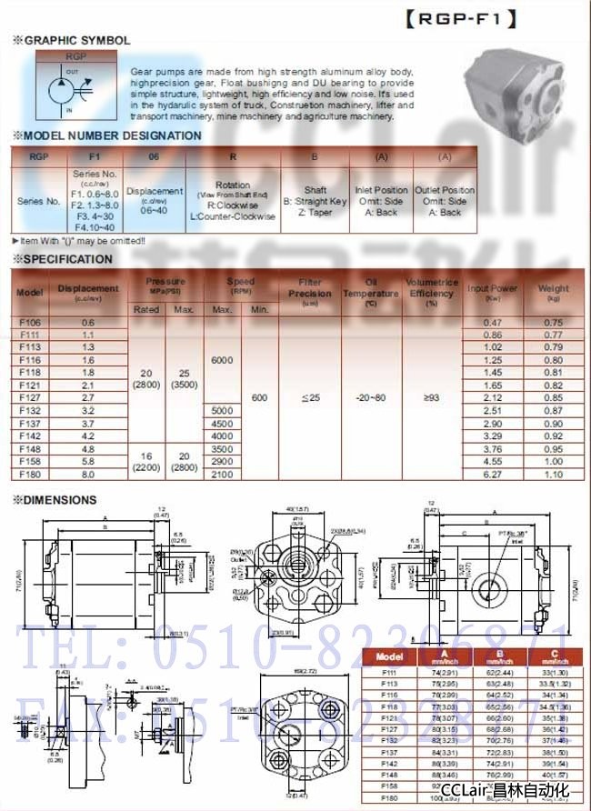 RGP-F106,RGP-F111,RGP-F113,RGP-F116,RGP-F118,齿轮泵浦