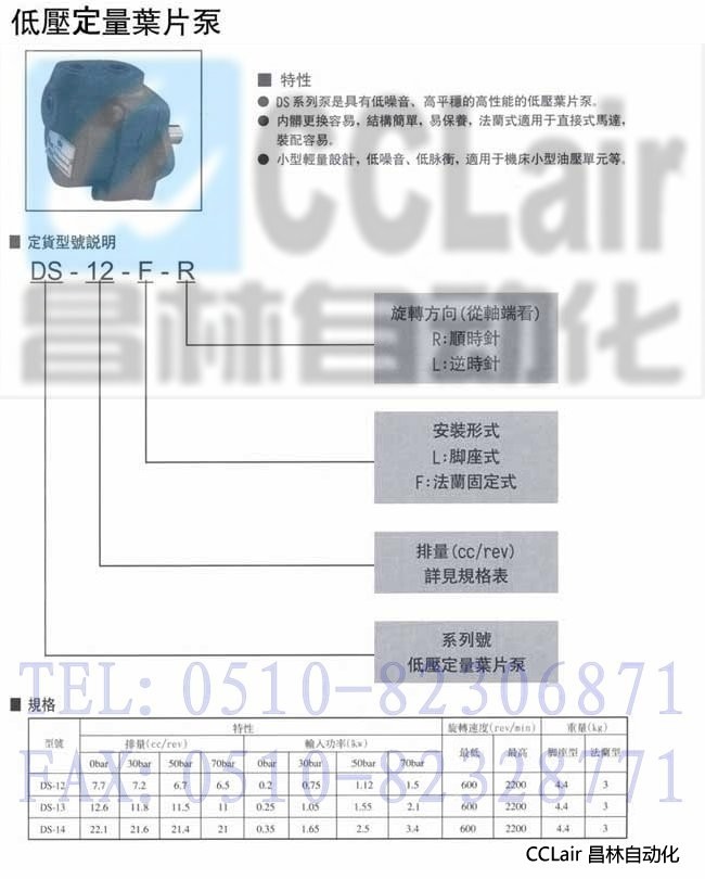 DS-12,DS-13,DS-14, 低压定量叶片泵
