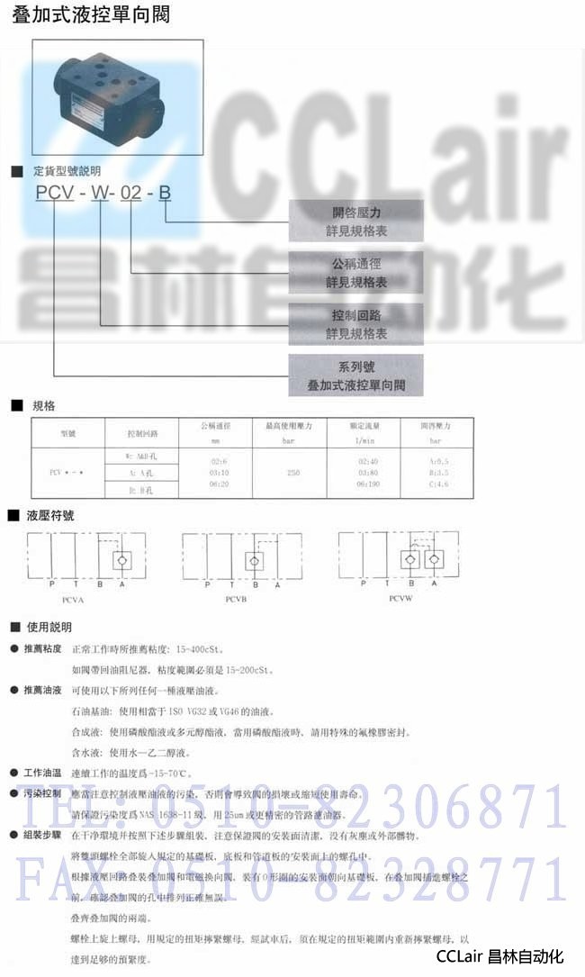 PCVB-02,PCVB-03,PCVB-06,叠加式液控单向阀