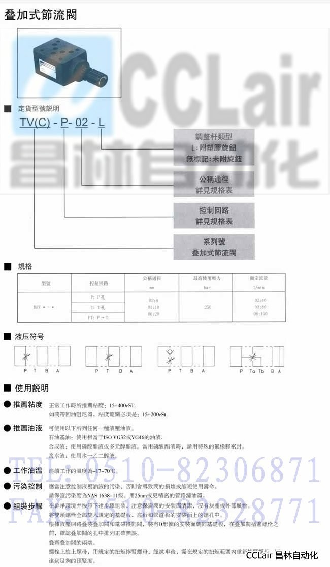 TVP-02,TVP-03,TVP-06,TVT-02,TVT-03,叠加式节流阀