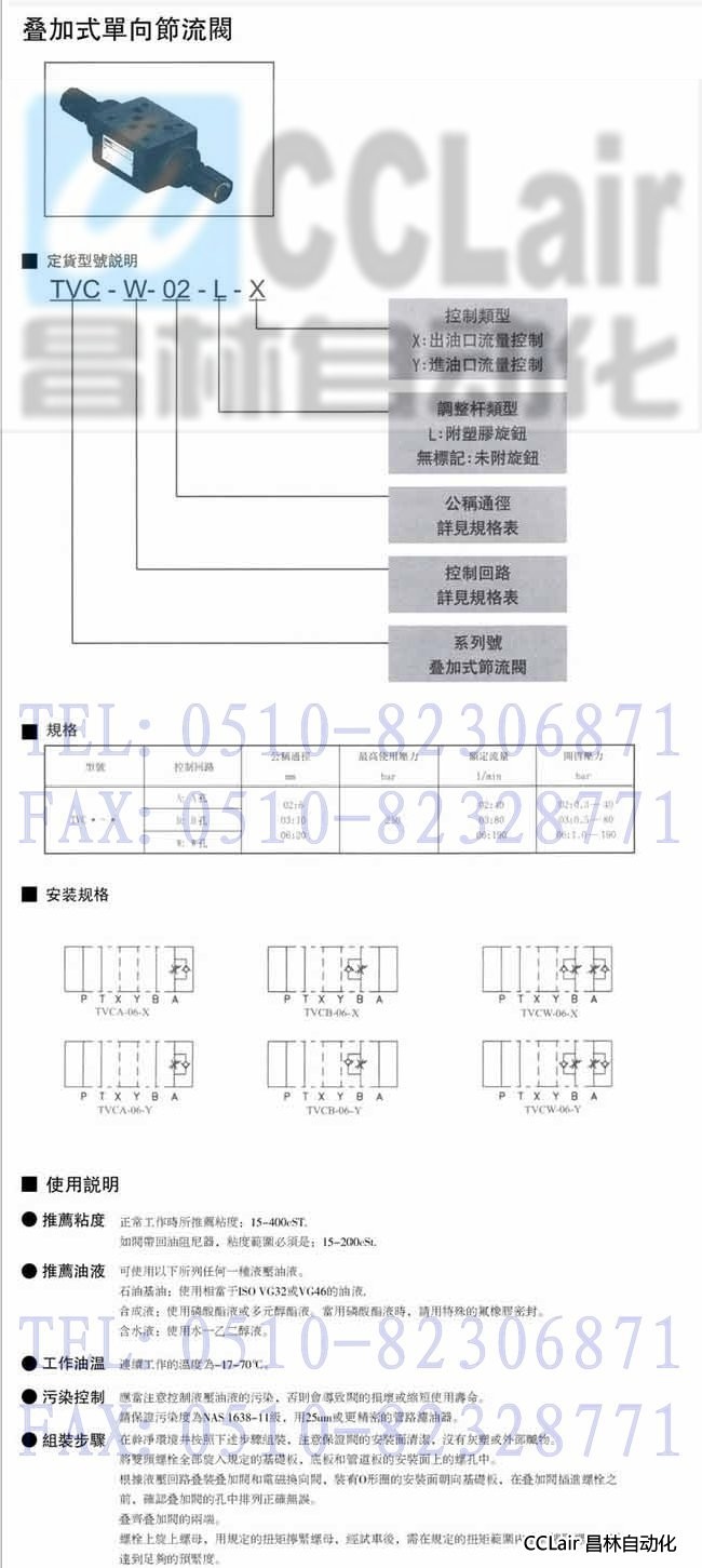 TVCA-02,TVCA-03,TVCA-06,TVCB-02,TVCB-03,叠加式单向节流阀